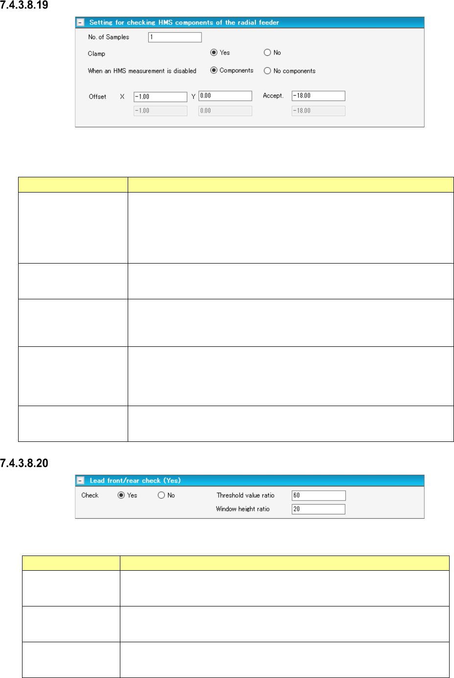 Table 7.4-60 Check items displayed on the “Lead front/rear check” screen