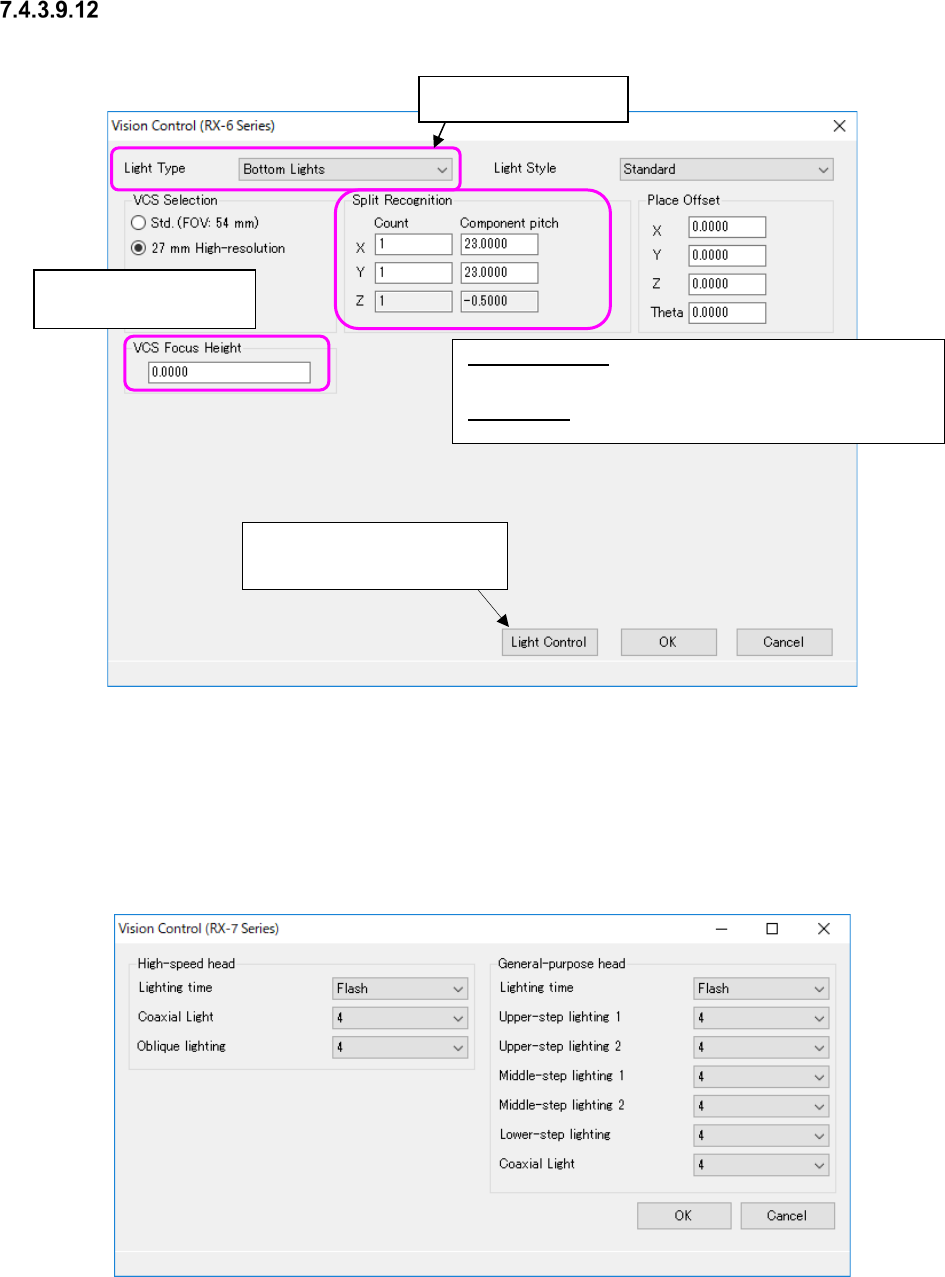 JaNets In structio n Manual 7. Program Editor 7- 81 Set the fol lowing item s on the “ V ision Contro l ( RX - 7 series ) ” screen. T able 7.4 - 61 Vision control data s creen ( RX - 7 S eri es ) items Head Item Descr ip…