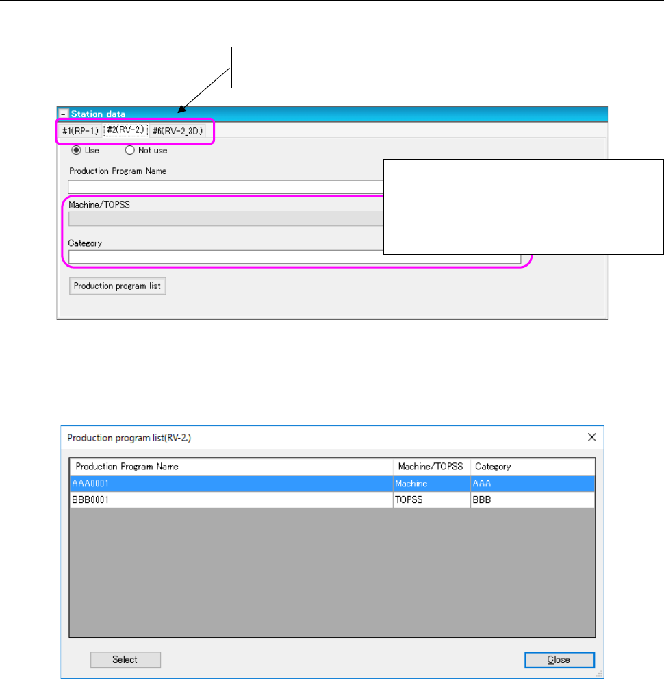 JaNets In structio n Manual 7. Program Editor 7- 110 7.4.7 Editing the station data This sc reen allo ws you t o set data such as a pro duction pr ogram when a produc tion line includes a machine other than a moun ter or…