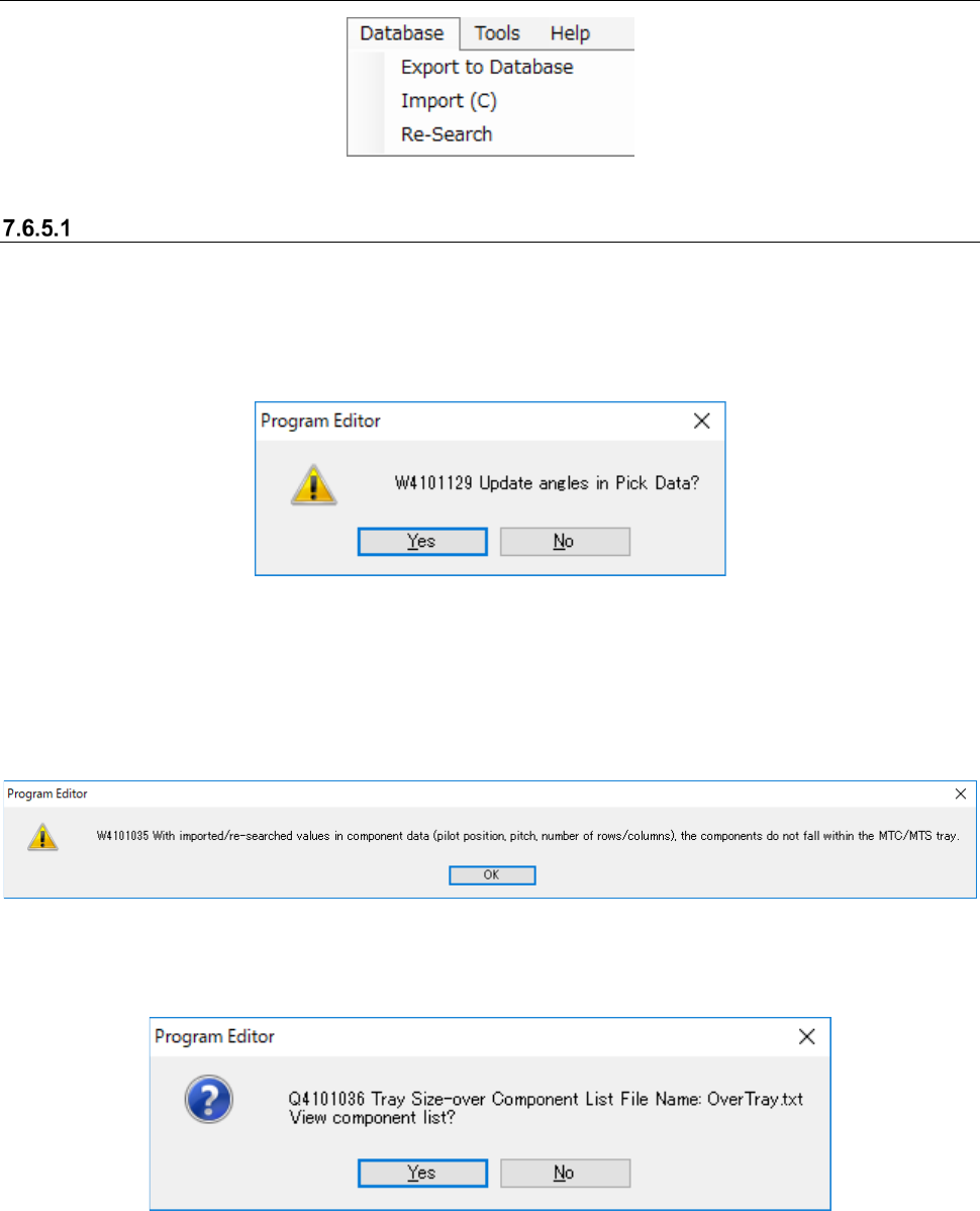 JaNets In structio n Manual 7. Program Editor 7- 137 The messag e abov e asks y ou whether to display the list of tray size over component s or not. When you se lect the <Y es > button on t his messag e, the list o…