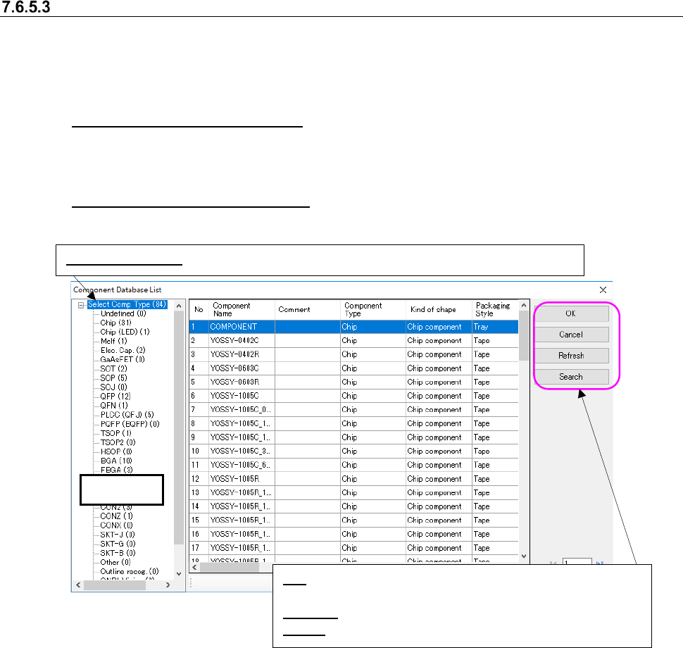 Select Comp Type: Displays the data on all component types registered in the database.