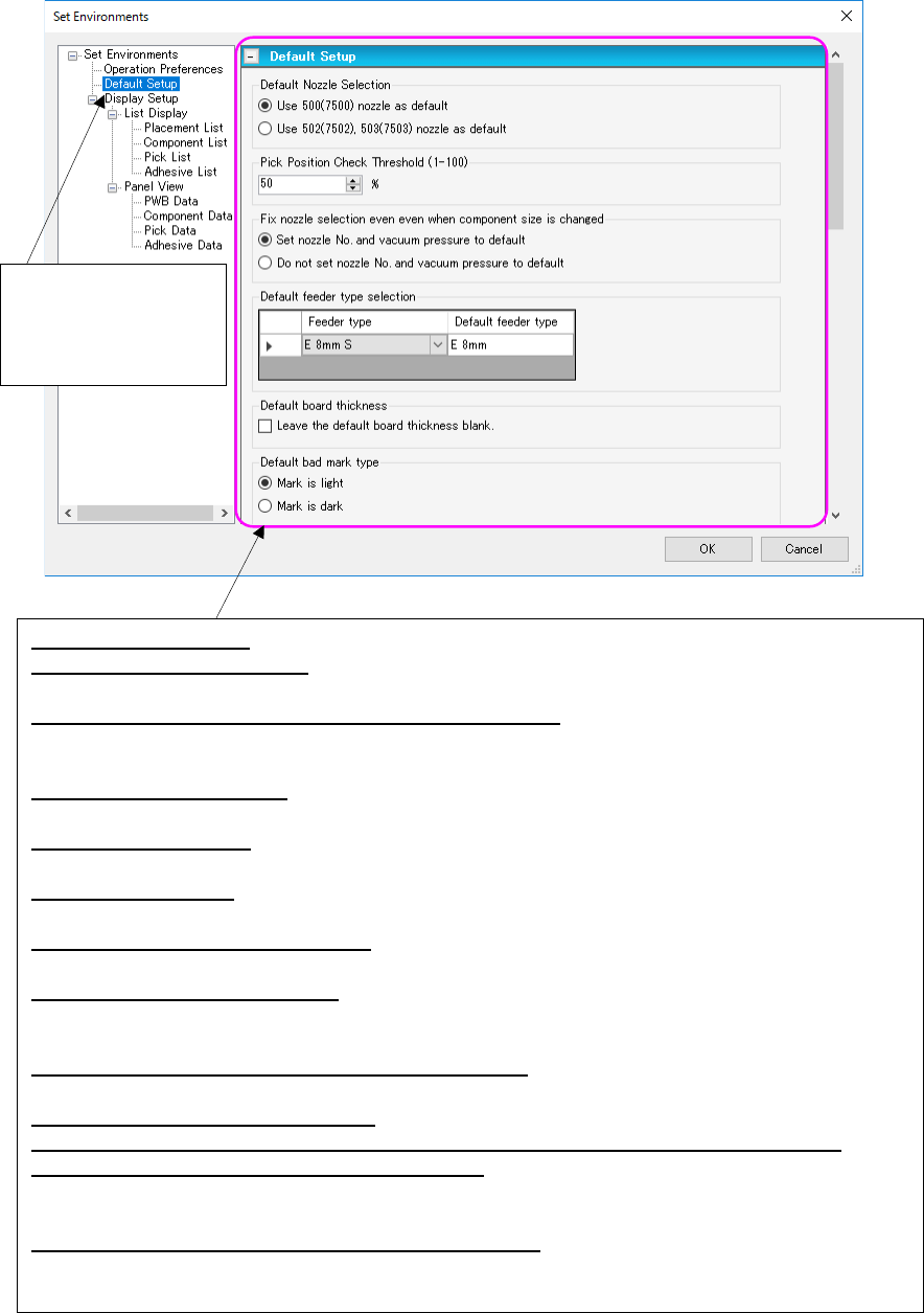 Default Bad Mark Type: Set the default bad mark type of PWB data to be applied when you create new