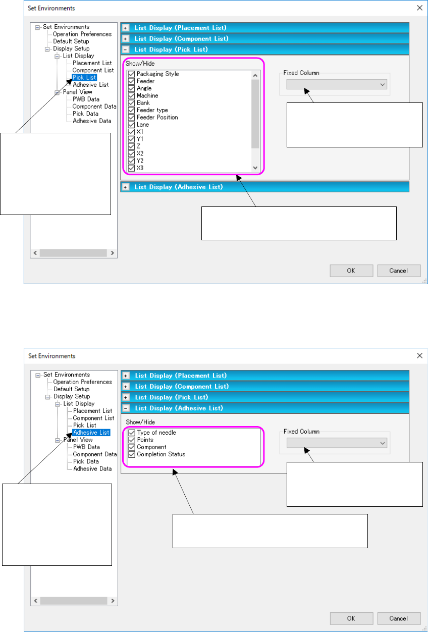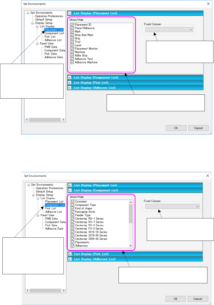 JaNets In structio n Manual 7. Program Editor 7- 143 (3) List Display (Plac ement Li st) W hen you sel ect “ Placement List, ” y ou can display or hide each item on the “ Placem ent List” screen. Figure 7.6 - 39 “ Set En…