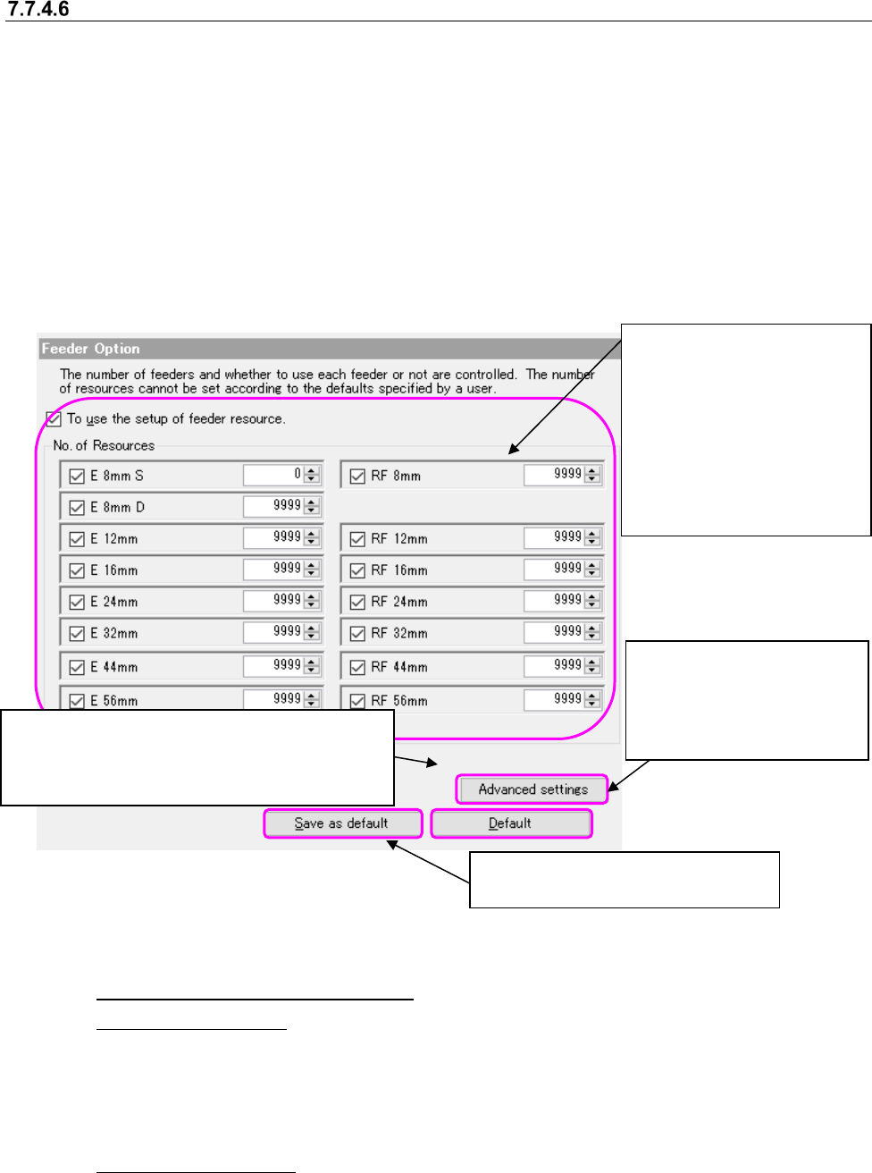 JaNets In structio n Manual 7. Program Editor 7- 159 (2) No. of R esour ces The number o f resourc es is an ena bled opti on whe n you use the set up of a fee der resourc e. The input pos sible rang e is as foll ows, res…