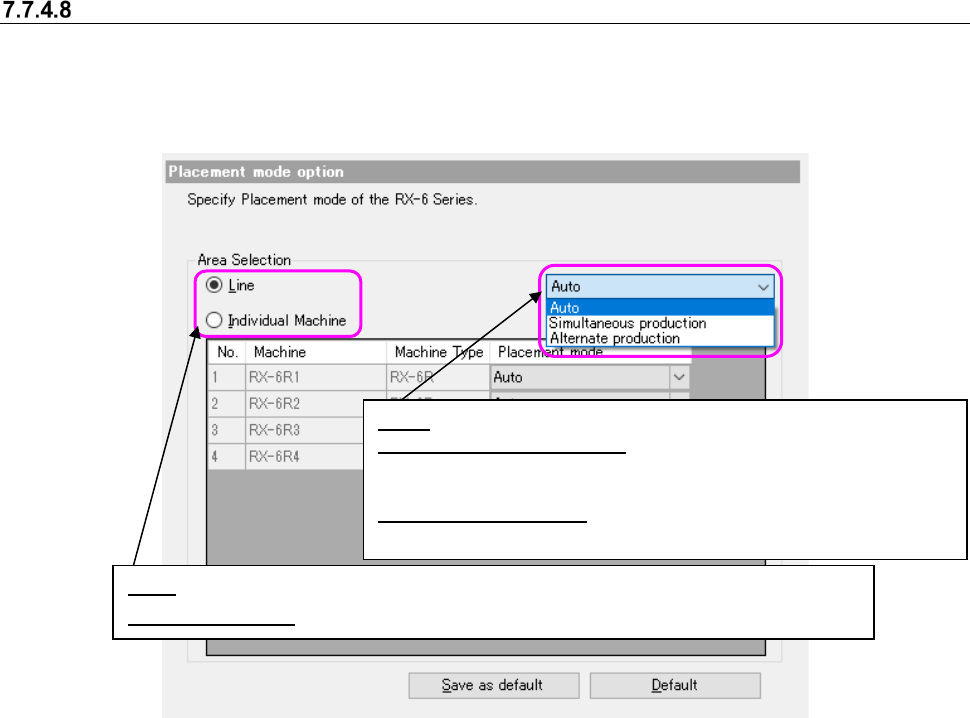 JaNets In structio n Manual 7. Program Editor 7- 162 Placement mode option This option a llows you t o specify t he placem ent mode of RX -6 seri es . A placement mode opti on is disp layed o n an optio n setting field u…