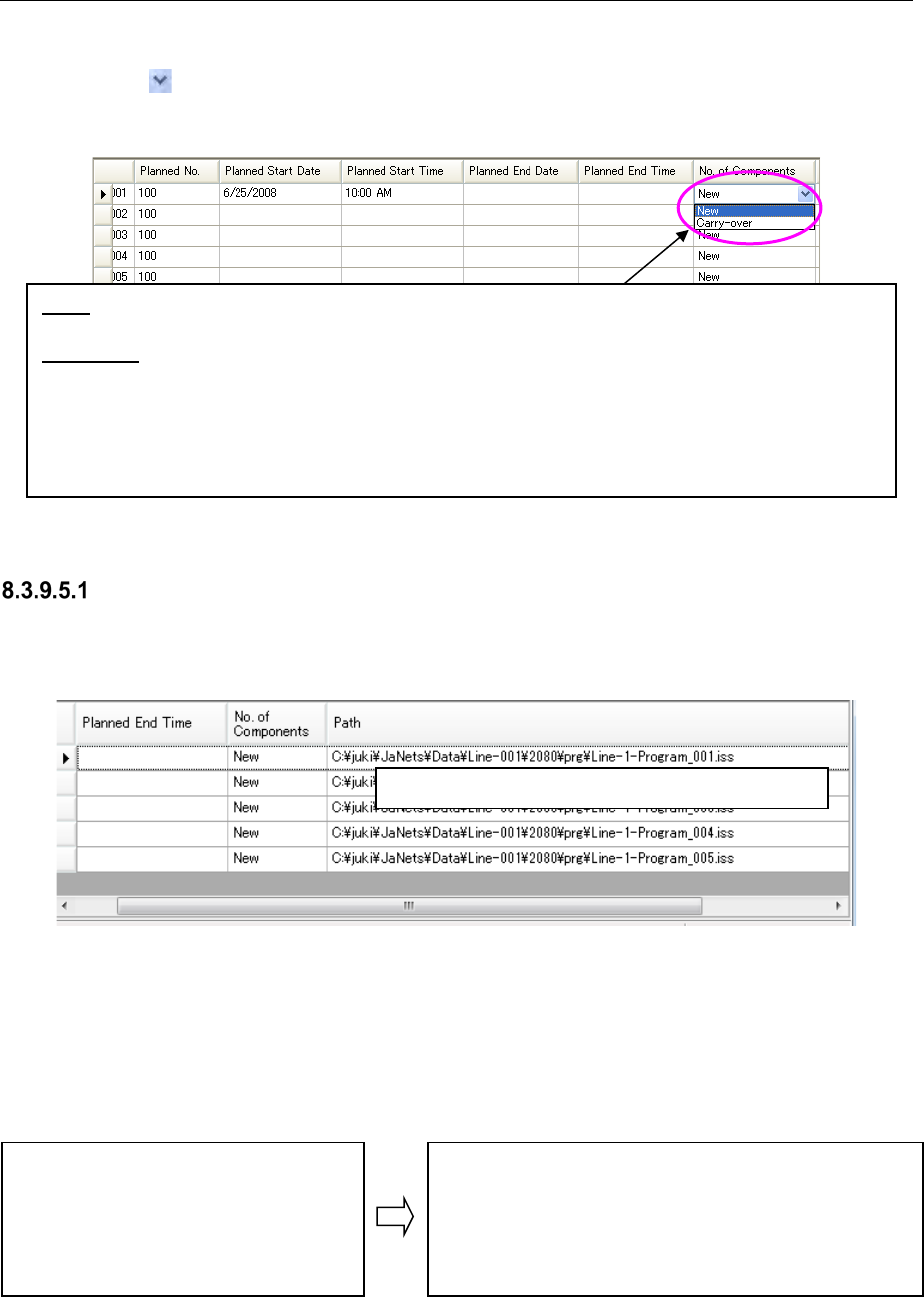 Carry-over: Copies the number of the remaining components of the previous production program to that