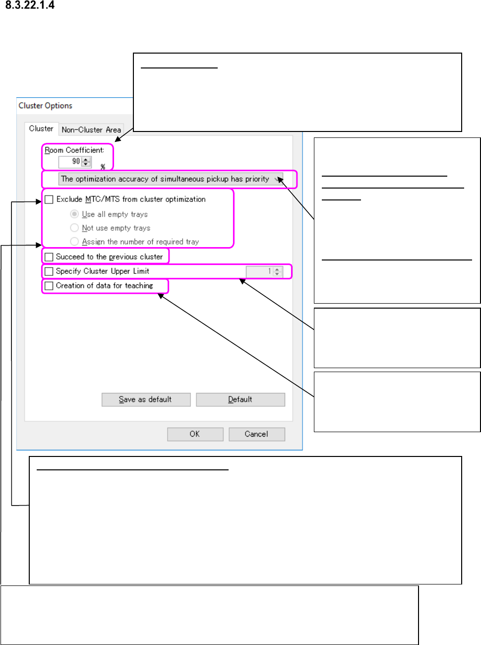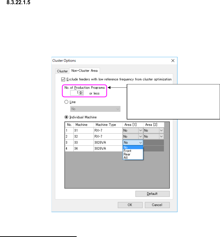 Set the area not to be used with cluster optimization for either the entire line or each machine.