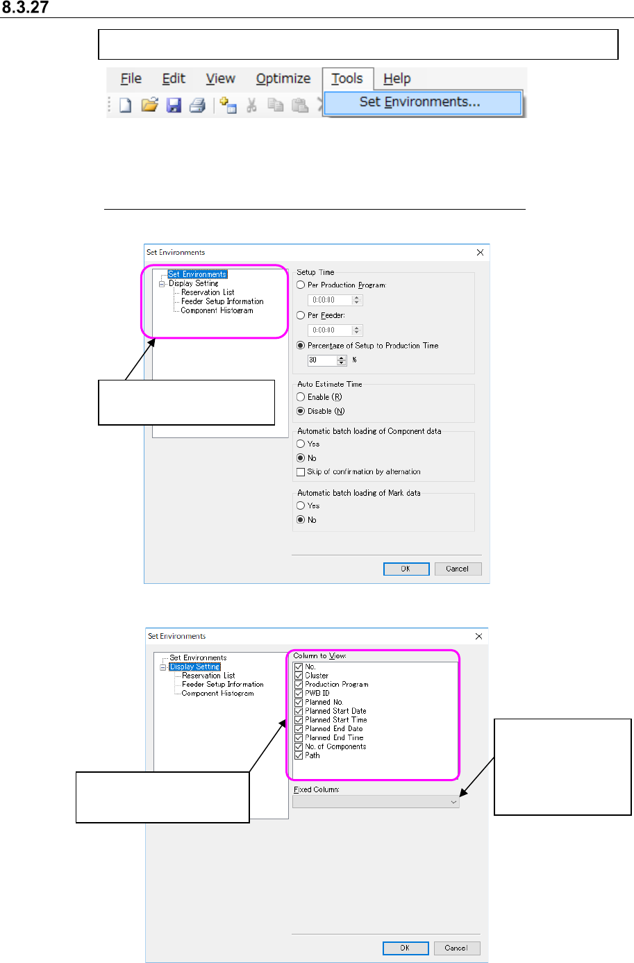 This “Set Environments” dialog box allows you to make settings of the following items: “Setup