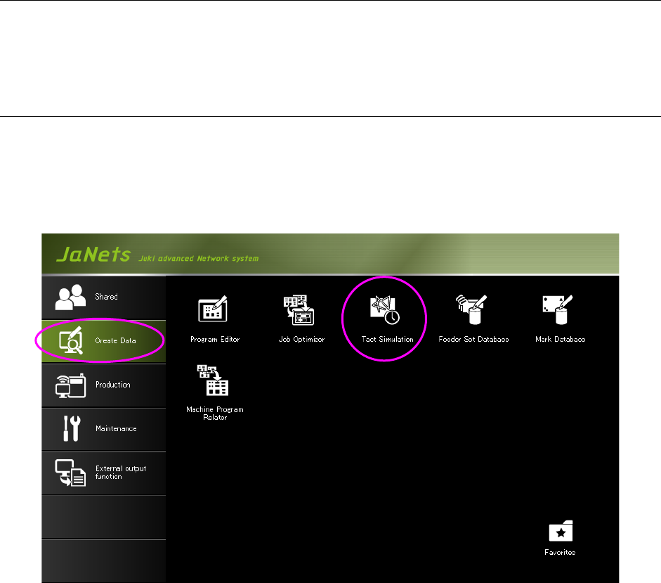 ① Click the “Create Data” tab, and then the “Ta c t Simulation” icon on the JaNets Launcher