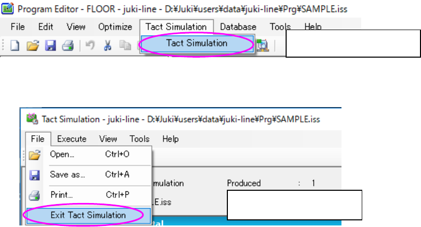 ② Select the [Ta c t Simulation] command from the menu bar of the Program Editor, and then