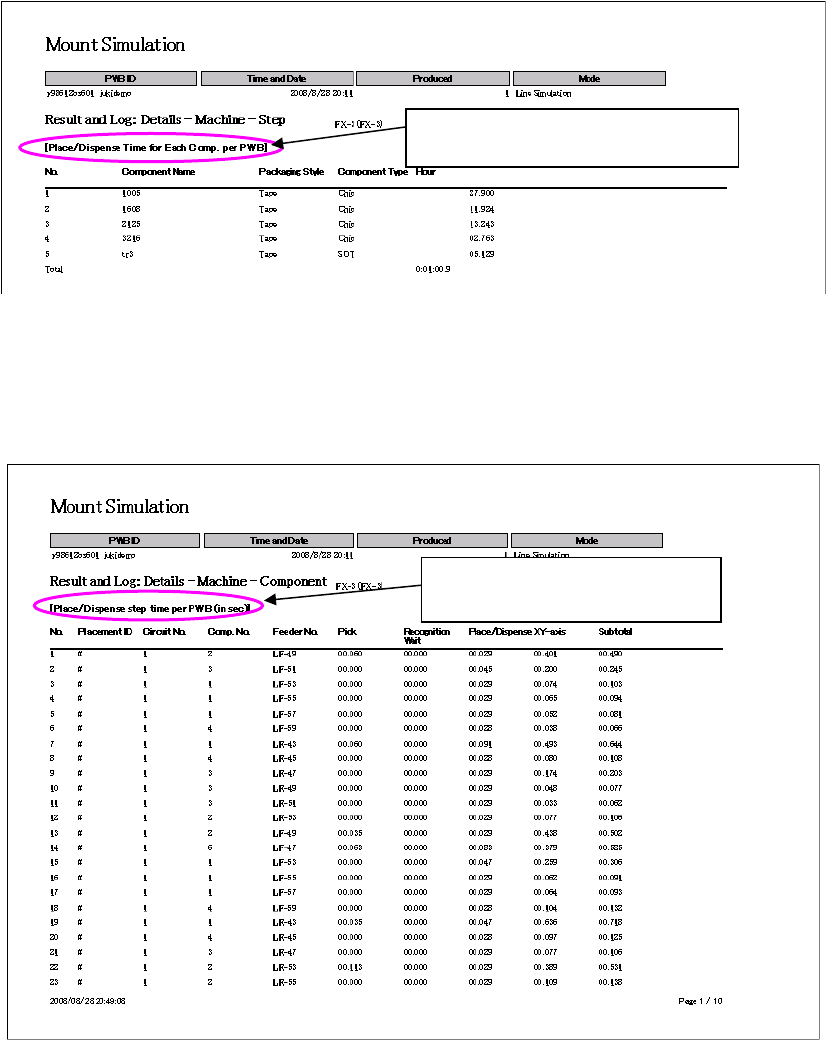 J aN et s Instr ucti on M anua l 9. Tact S imul at ion 9- 11 Exam pl e of t he p ri nt ed te xt wh en y ou s el ect “D etai ls ( Each M achi ne) ” an d 9.3 .3. 1. 4 “Each Component” Figur e 9.3 - 11 Prin ted text when yo…