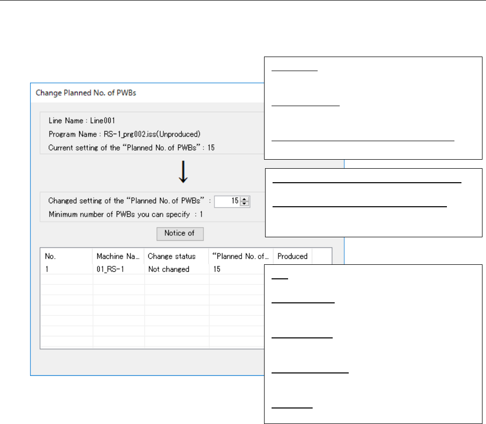 to the value of the menu item “Changed setting of the ‘Planned No. of PWBs’,” the <Notice of>