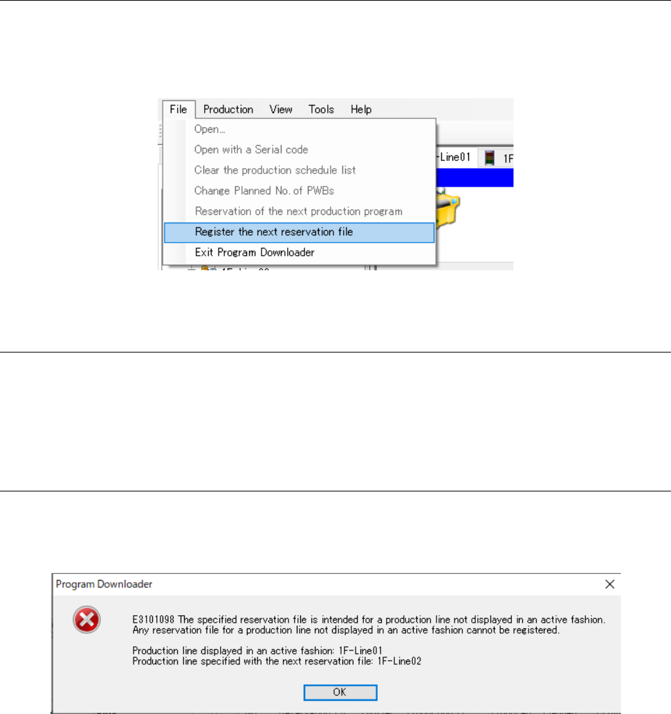 Figure 13.9-23 If you try to register a reservation file of a production line