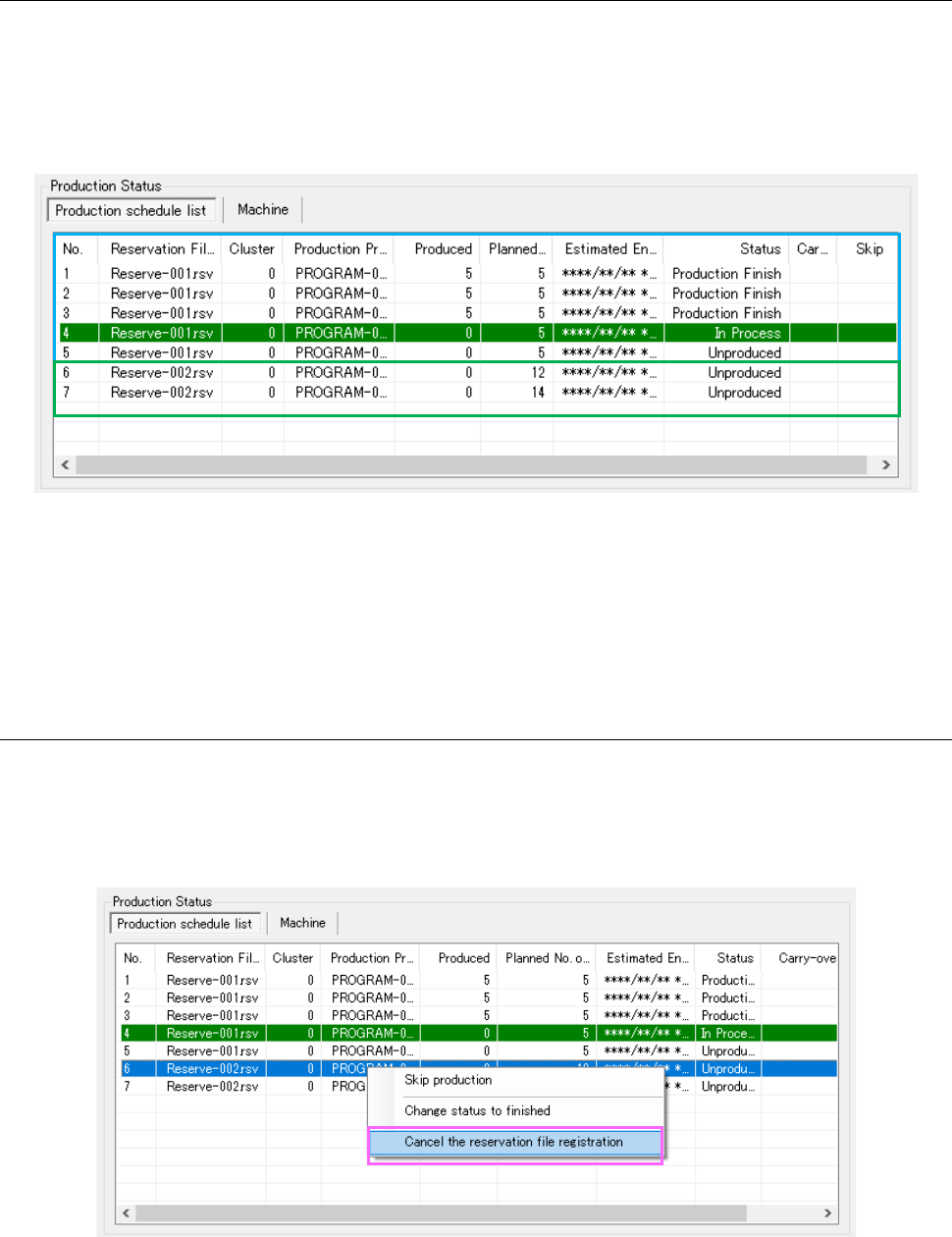 [Cancel the reservation file registration], the selected reservation file is deleted from the production