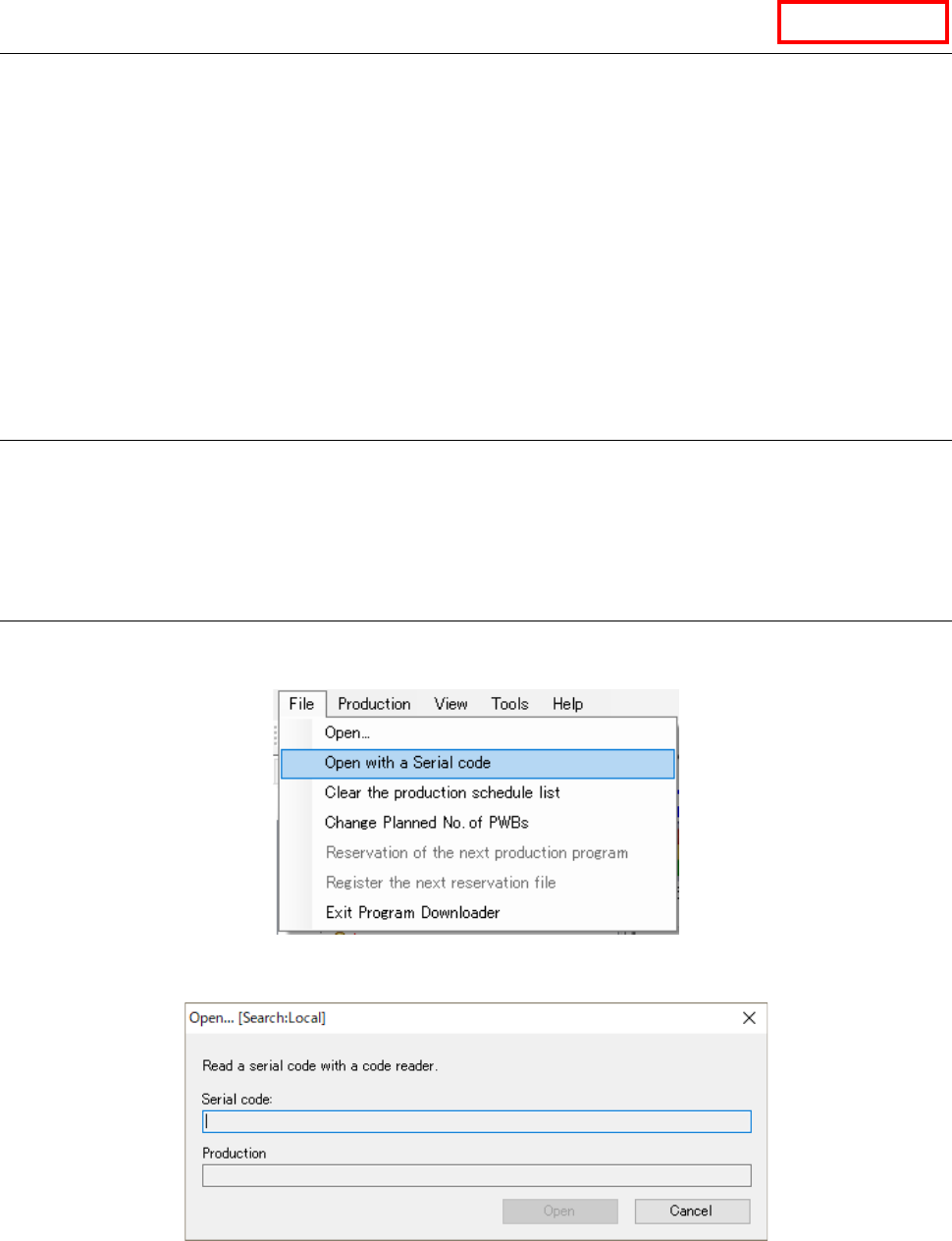 Table 13.10-1 Operation for opening a production program associated with a serial code