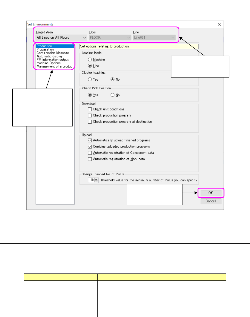 For “Setting target”, it can be selected whether the common setting is used for all the lines or an