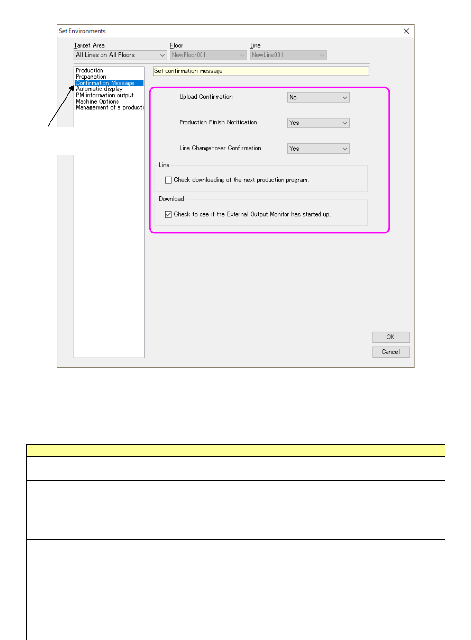 Figure 13.14-4 Environments – Confirmation message setting