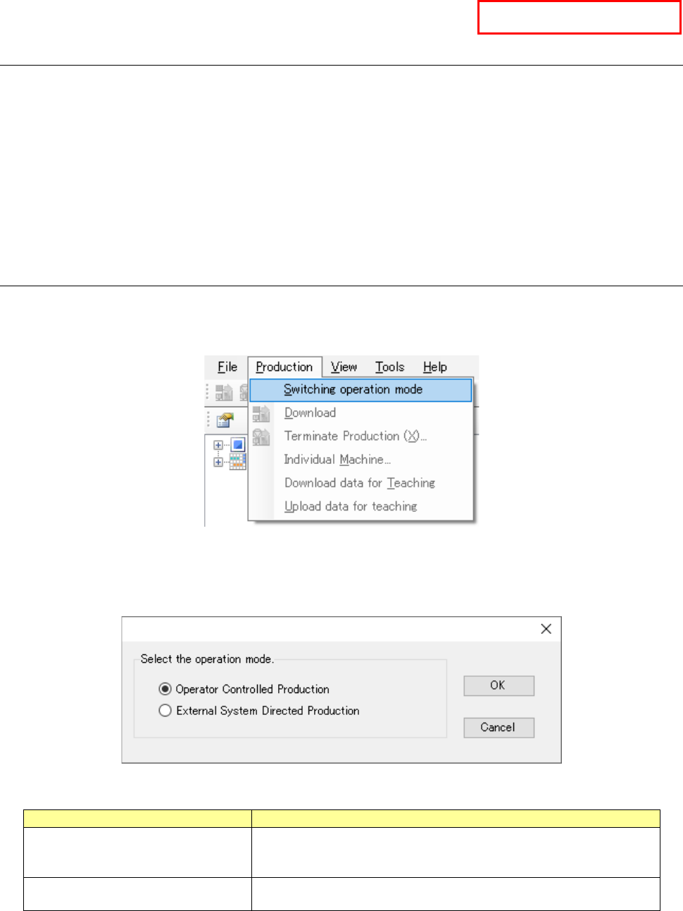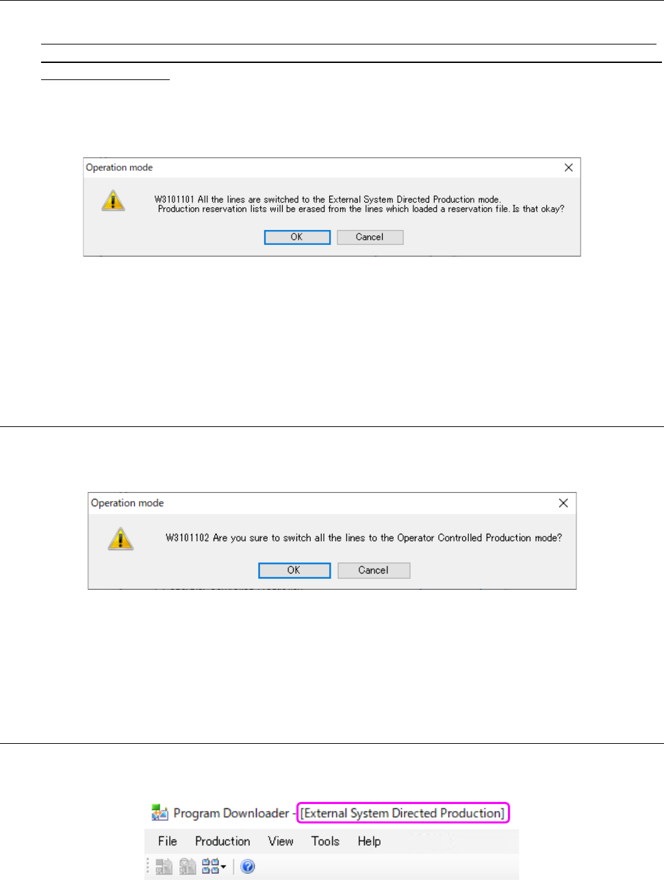 When you switch the operation mode from “External System Directed Production” to “Operator