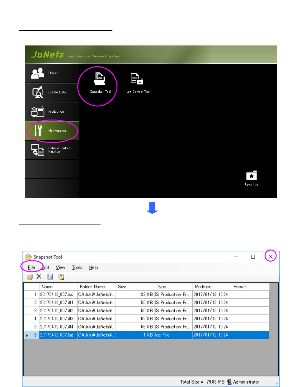 J aN et s Inst ructi on Manual 14 . Snapshot Tool 14 -1 14. Snapshot Tool Wha t i s t he Sna psho t T o ol ? This ap p li cati on coll ects the i tem s des cr ib ed in Sec tion 14. 1.1 “ Fi les to be c oll ected ” such a…