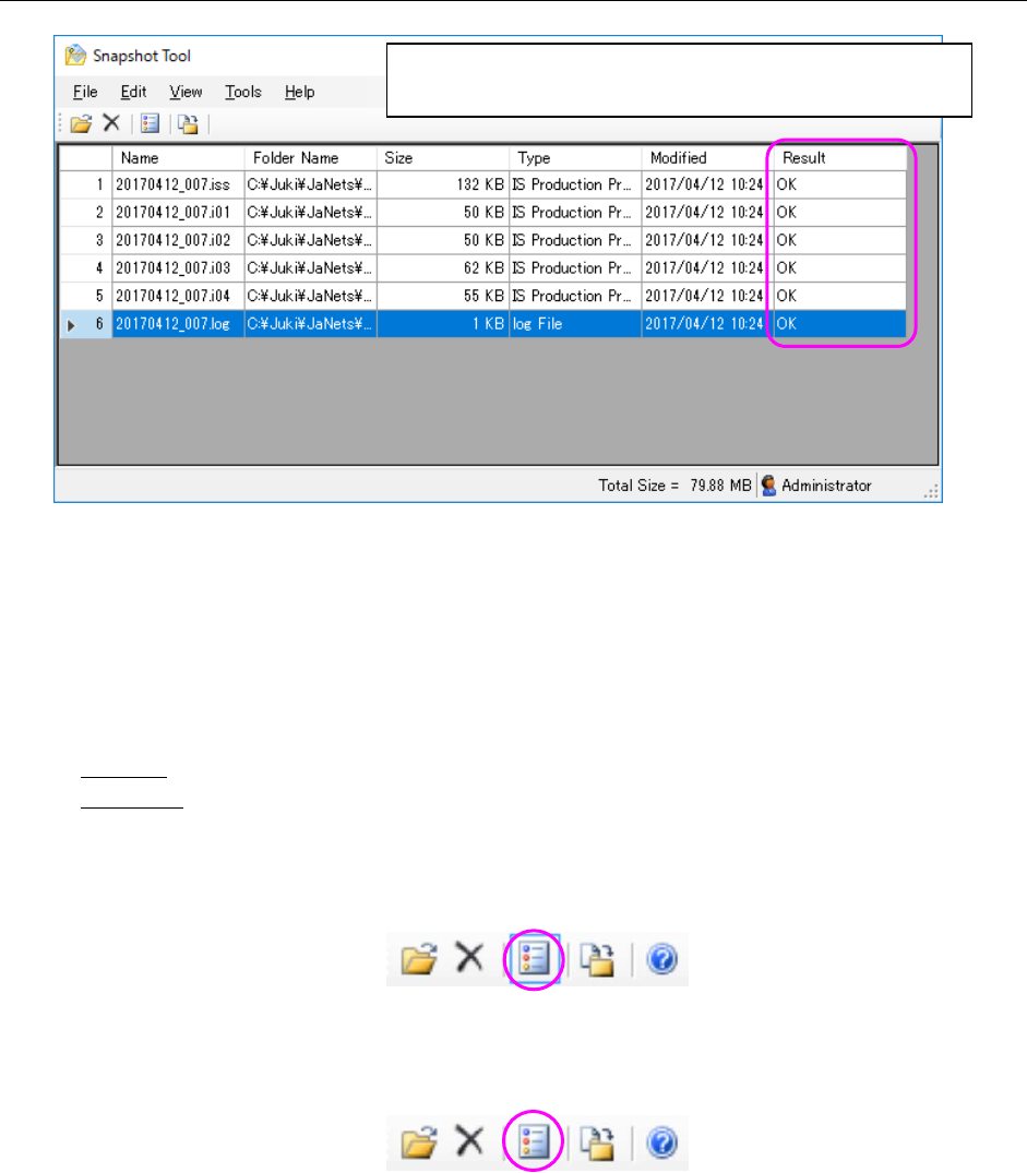 the <OK> button, the “Snapshot Tool” screen reappears.