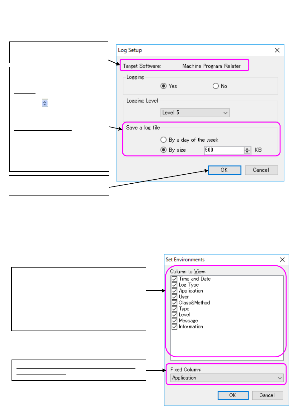 Figure 15.2-1 “Log Setup” dialog box