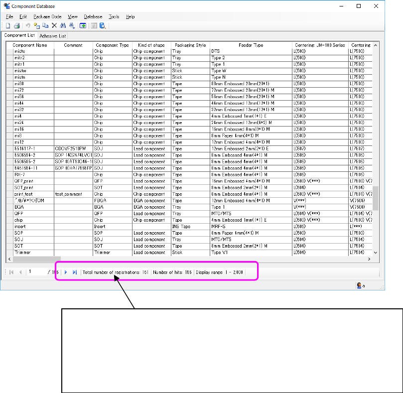 on the “Search through Component Database” screen is displayed on the grid as shown below.