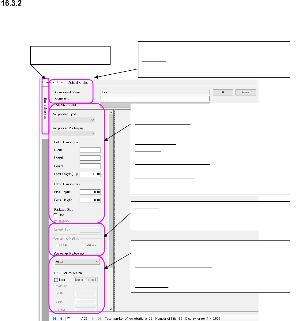 JaNets In structio n Manual 16 Component D ataba se 16 - 10 Figure 16.3 -4 Basic setting scre en (Item buttons in the componen t data edit screen) “Packaging Style” sett ing window The “Packa ging Style” setting win dow …