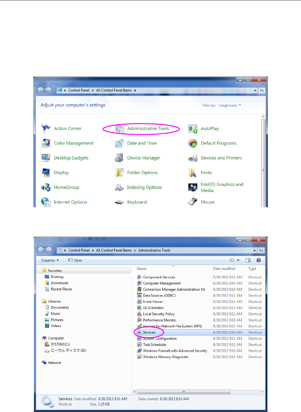(2) Select the “Services” from the “Administrative Tools.”