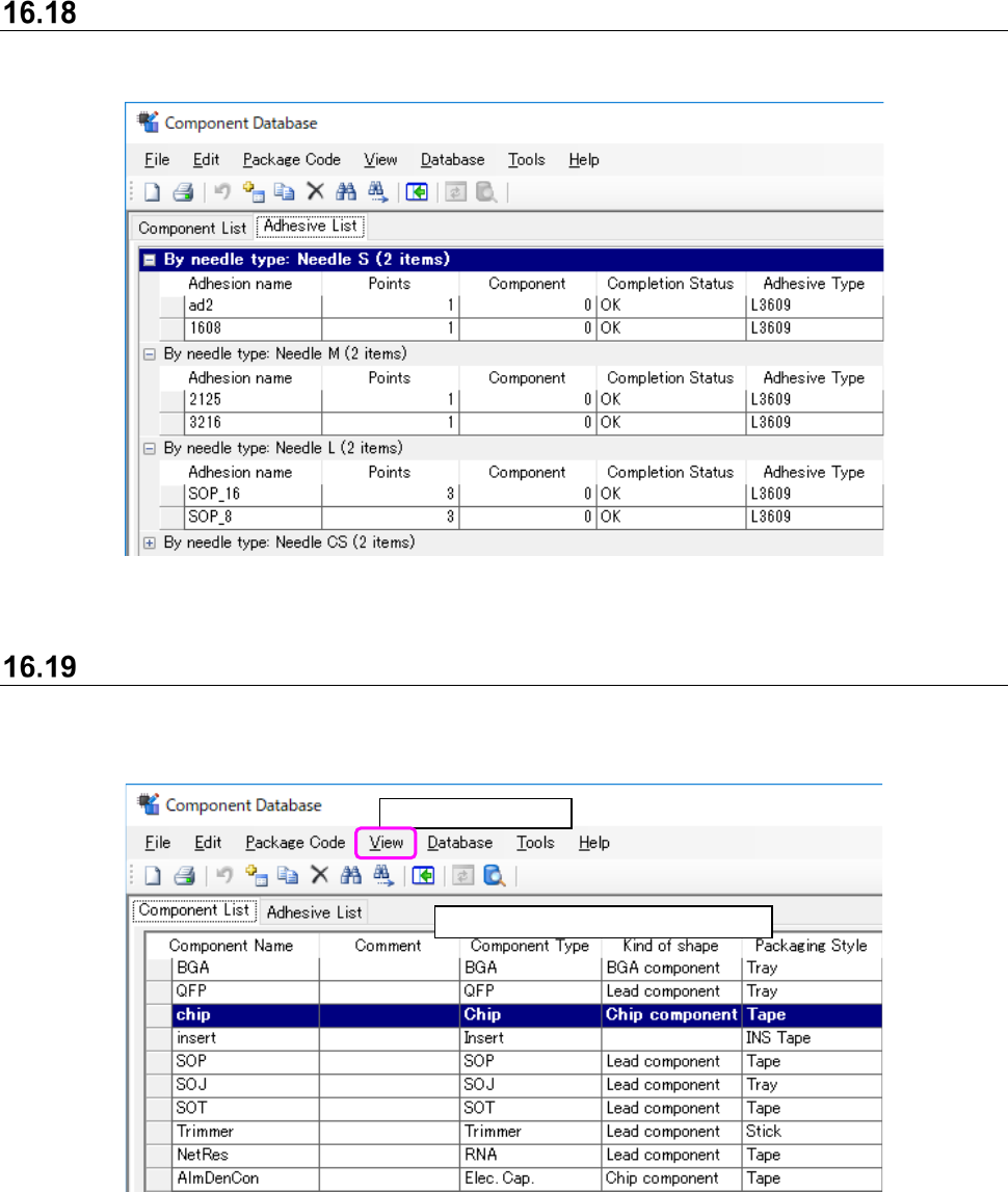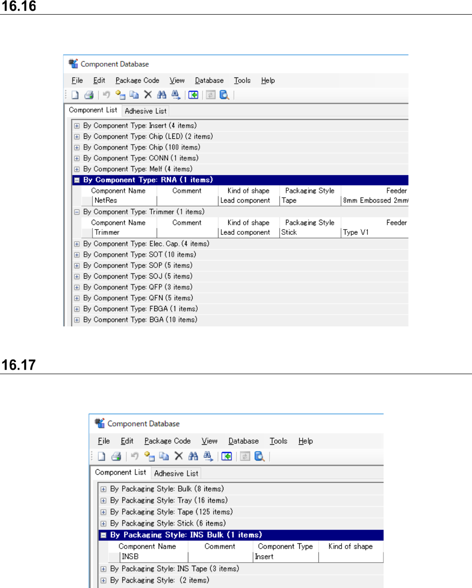 It displays component database by component type by selecting the [View] - [By Component Type]