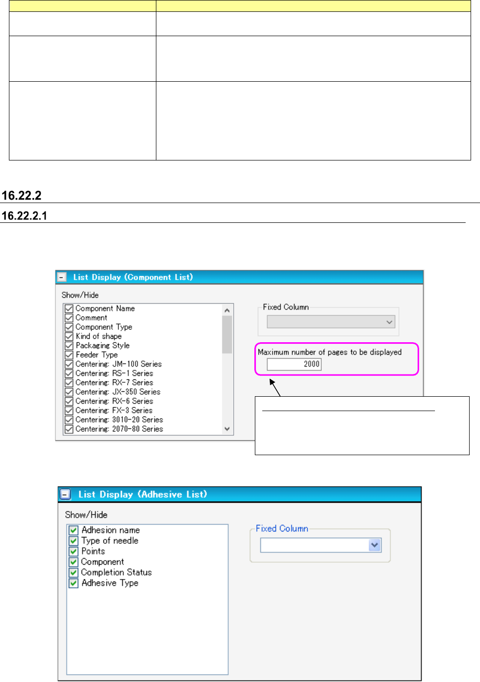 Figure 16.22-4 List Display settings (Adhesive List)