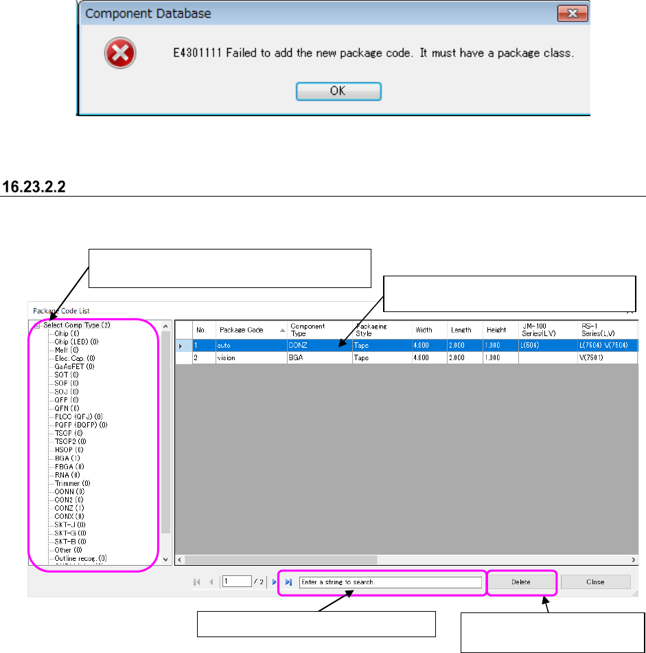 JaNets In structio n Manual 16 Component D ataba se 16 - 46 If component type is not s et, the following err or mes sage appe ars, and pa ckage cod e is not created. Figure 16.23 -4 Component type unset err or message Pa…