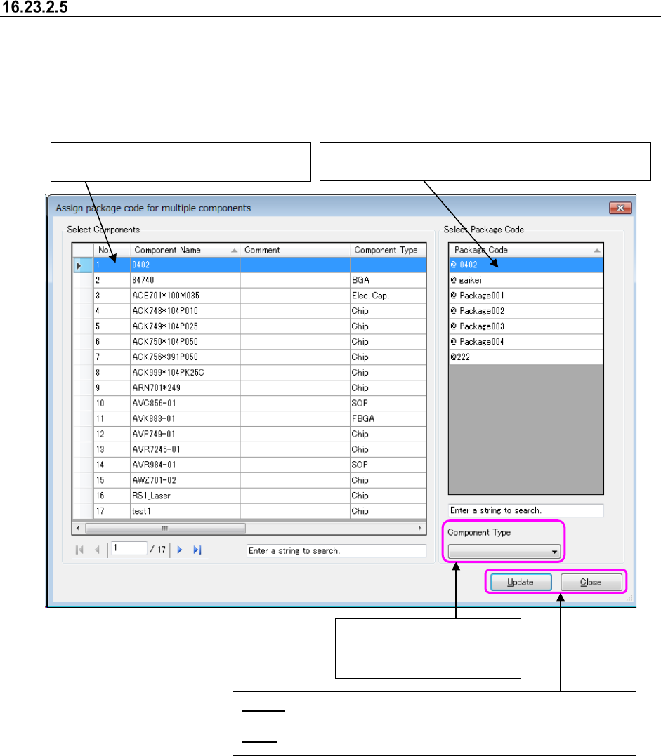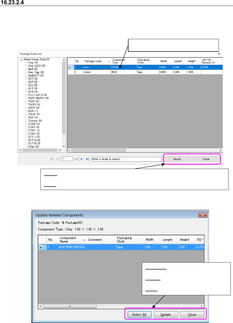 JaNets In structio n Manual 16 Component D ataba se 16 - 48 Package code recall If the package c ode is rec alled, al l usable cod es are displayed i n a list and com ponent dat a with the same pac kage co de is updated …