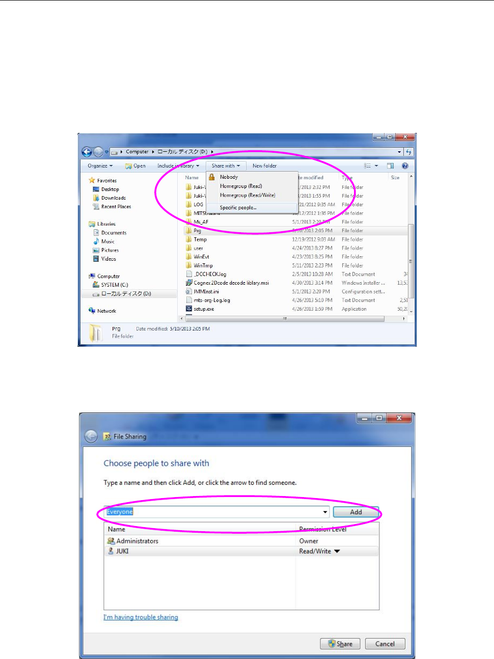 JaNets Instr ucti on Man ual 2. Install ation 2- 37 2.5.1 .3 Setting a shared folder In order to d ownl oad a pro duction pr ogram f rom the Program Dow nload er , the shared f older which has a shared na me of "Pr …