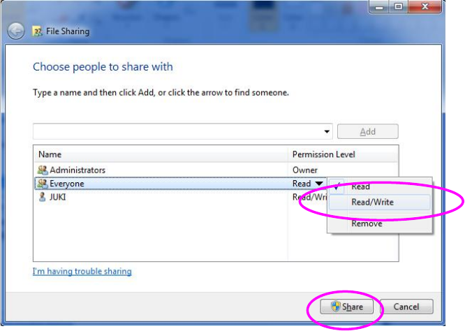 Figure 2.5-12 Shared folder setting (Windows 7)