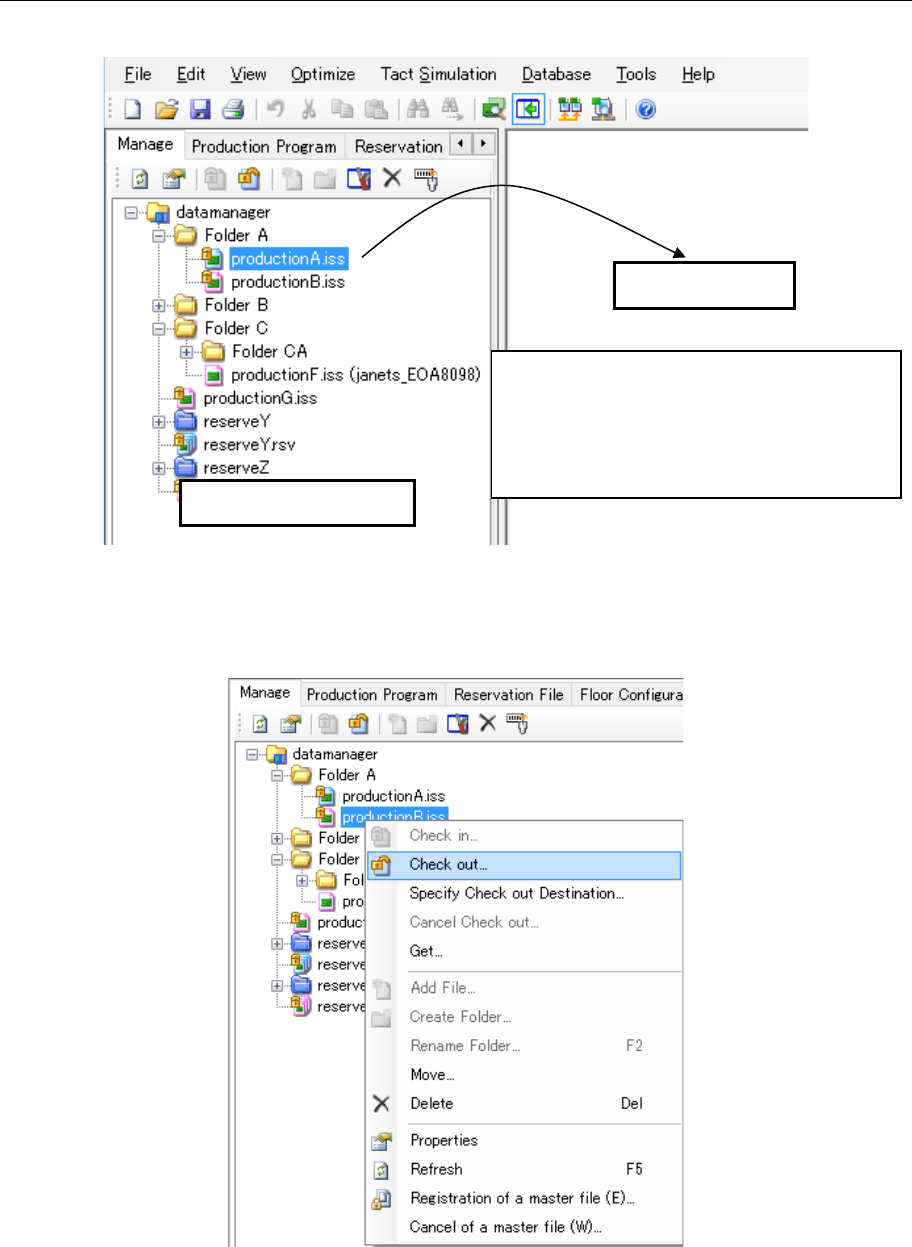 2. Click the right button of a mouse on the “Manage” screen. Select the [Check out] command on