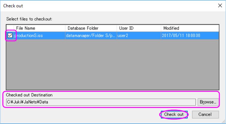 ② Specify the destination for checking out a file in the “Check out Destination” (you can change