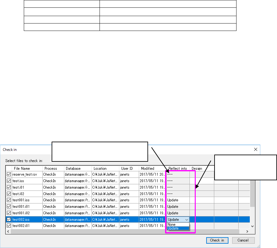 ② In the check-in check dialog, perform master file reflection setting.