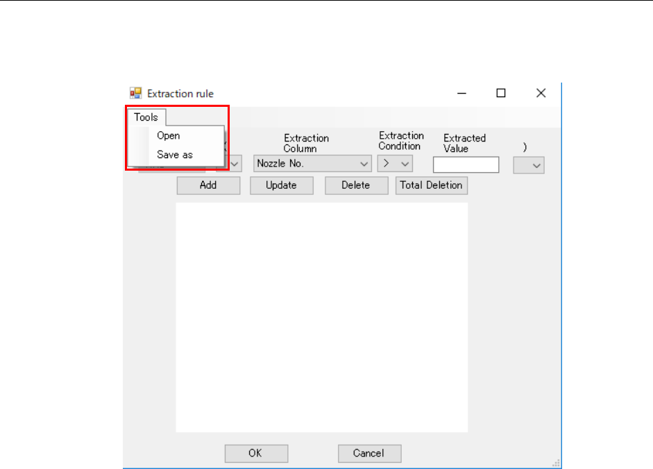 Select the menu command [Open] from the “Too l s ” menu to load an extraction rule.