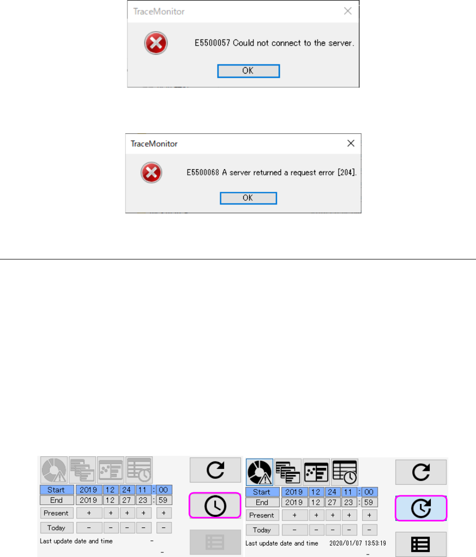 If TraceMonitor cannot connect to the server or any error occurs at the server when data is updated,