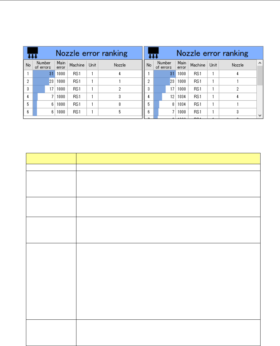 Table 19-3-7 Items of the “Nozzle error ranking” information