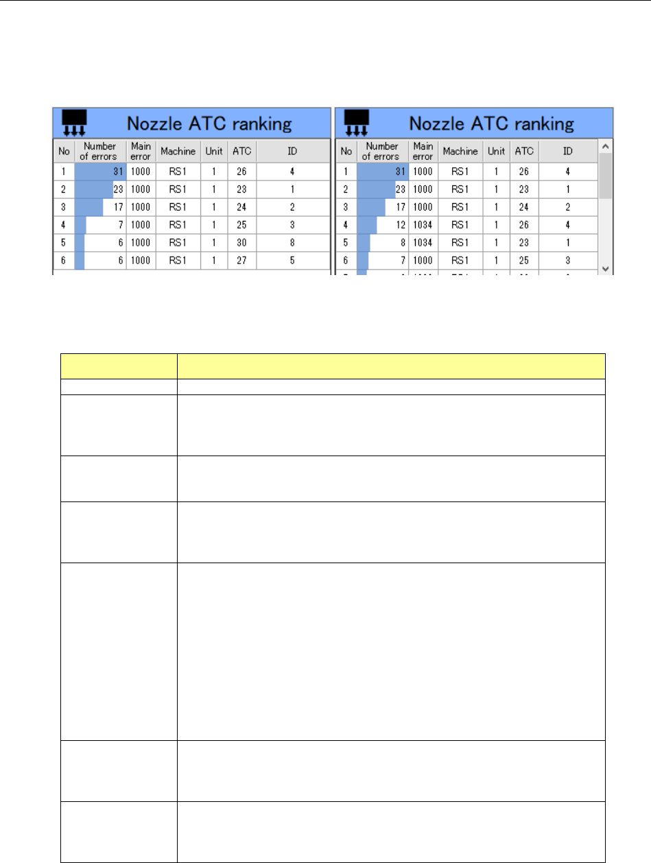 Table 19-3-8 Items of the “Nozzle ATC error ranking” information