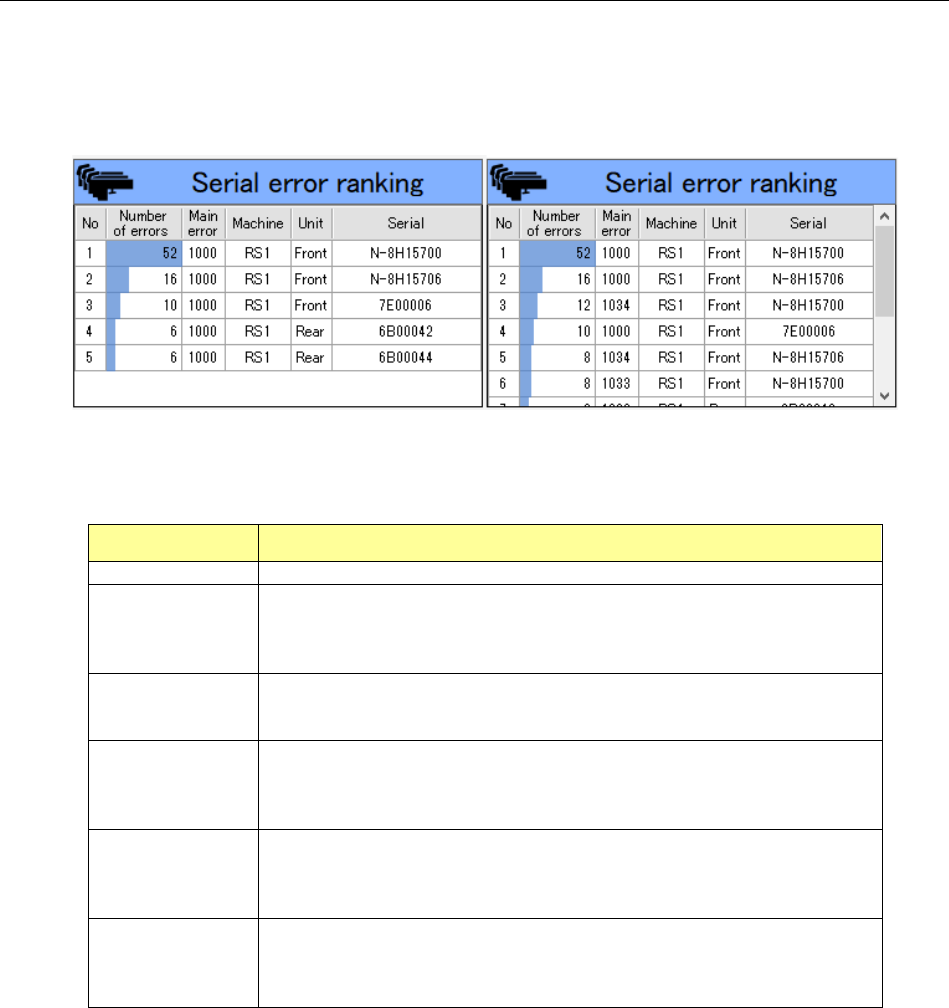 Table 19-3-9 Items of the “Serial error ranking” information