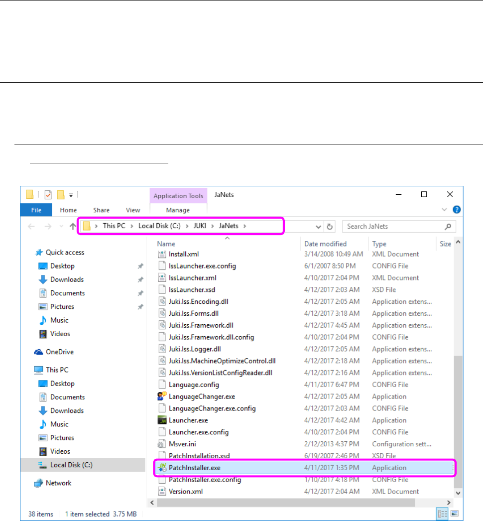 To start up the Patch Installer: Double-click PatchInstaller.exe immediately under the JaNets
