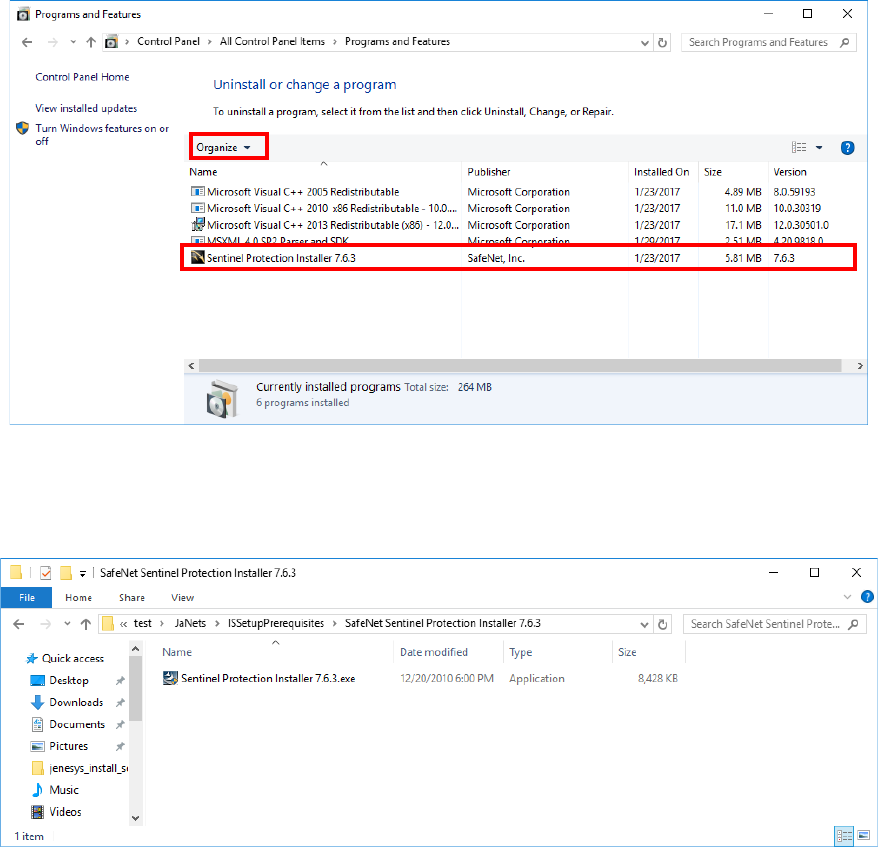(2) Select "Sentinel Protection Installer 7.6.3" from the list of the programs installed in PC to