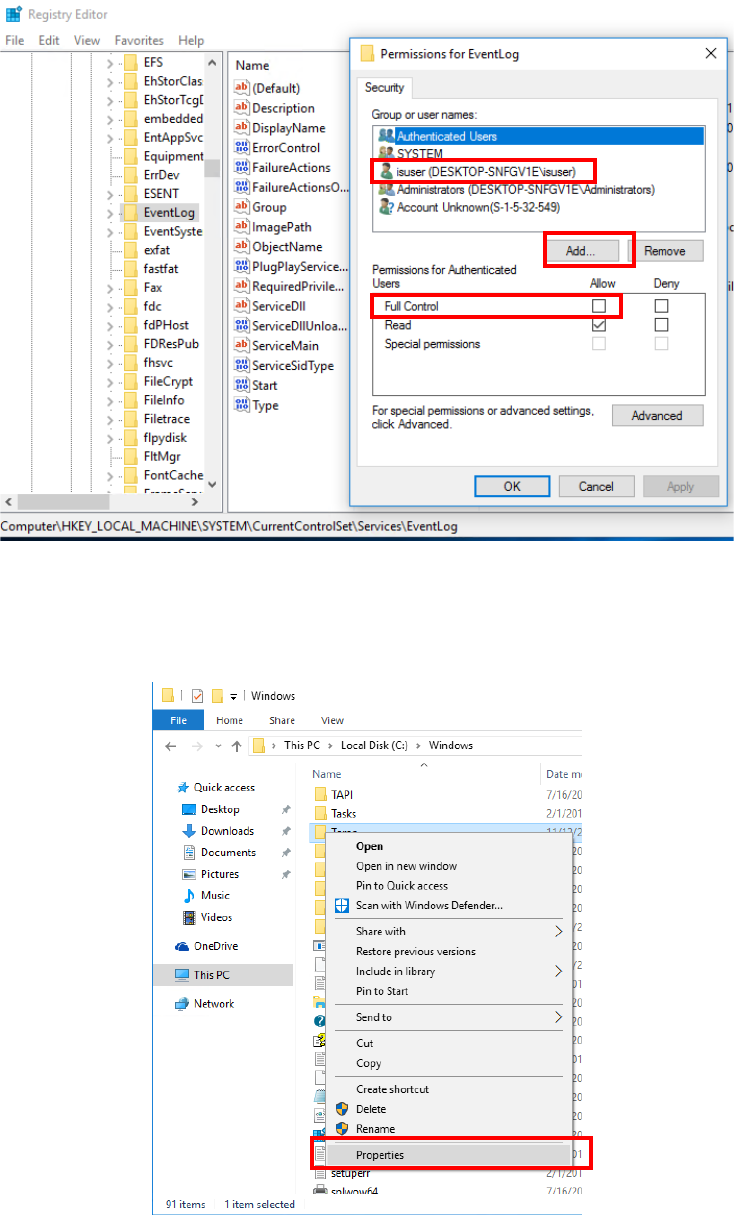 - Whether “C:¥Windows¥Tem p ” has the user authority of “isuser.”