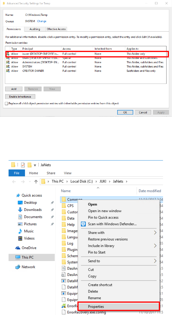 JaNets In structio n Manual B. T roubleshootin g B- 10 D isplay t he “ Secur ity ” tab, and then ch eck to se e if th e acces s per mission “ Ever yone ” is shown in the list. If it is not, add the ac cess permiss ion “ …
