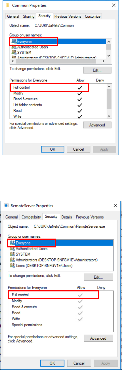 “Everyone,” and then check the “Allow” check box for the setting item “Full control.”