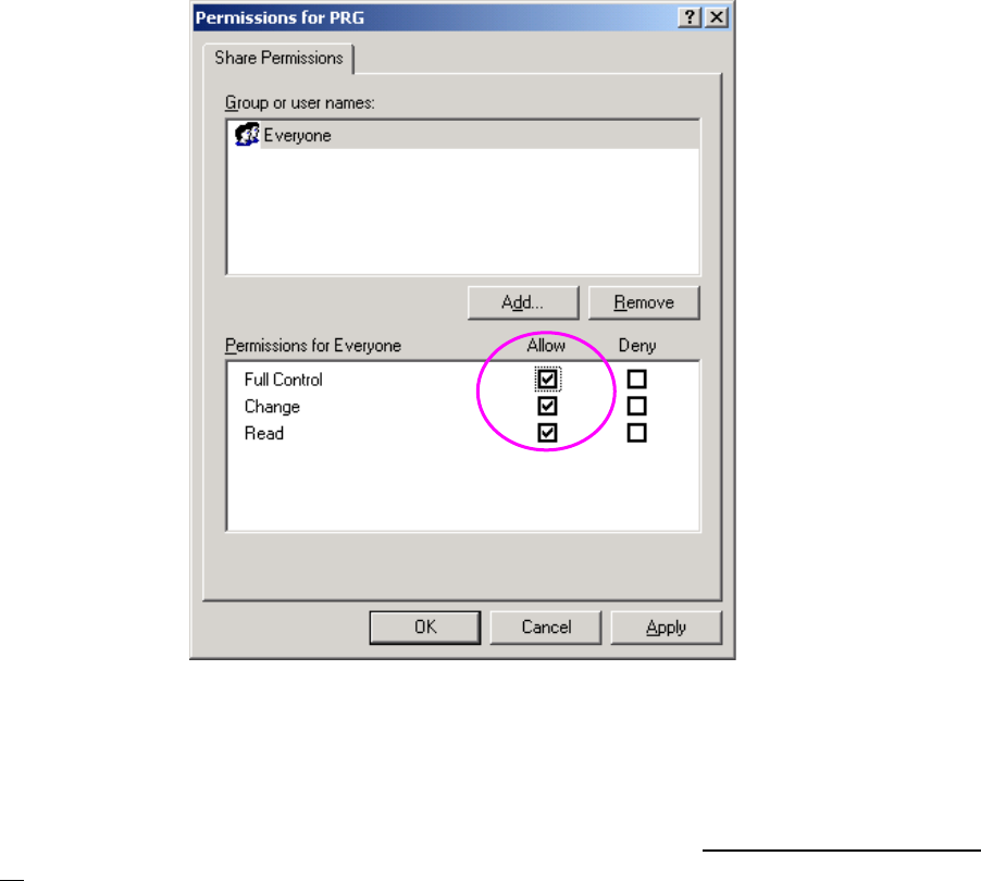default. Be sure to put a checkmark in the “Allow” check box for the item “Full Control.”