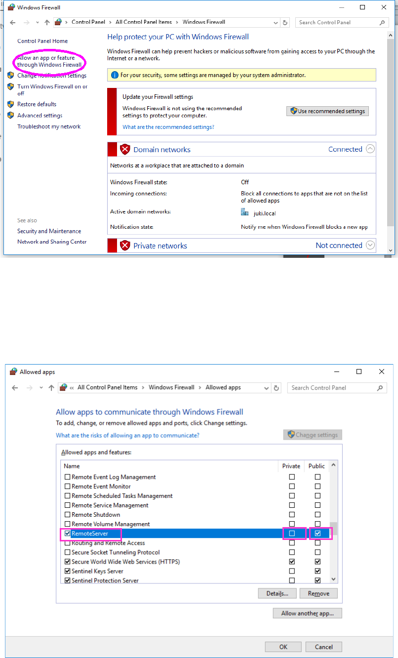 If any setting other than the above is performed, open “Windows firewall” from “Control panel.”