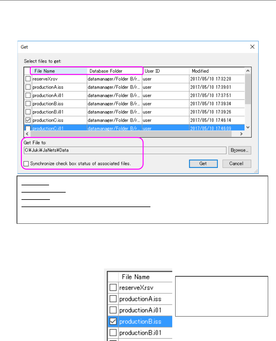 ③ When you select the <Get> button on the “Get” confirmation dialog box, the specified file is